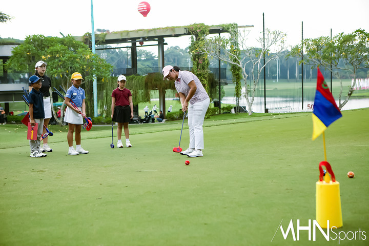 경기에 앞서 푸트리 아이샤 아마니가 스내그 골프 파3 경기를 펼치고 있다.