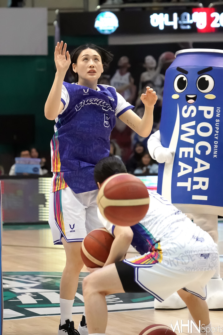 3점슛 콘테스트에 강이슬이 슛을 날리고 있다.