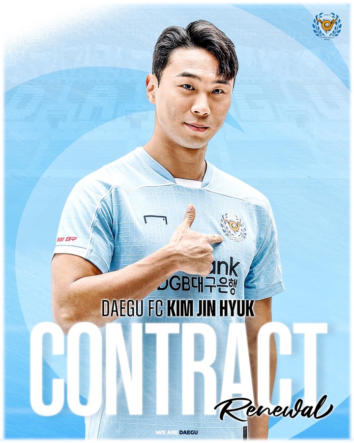 재계약을 맺은 김진혁은 "다음 시즌에도 대구의 일원으로 뛸 수 있게 돼 행복하고 감사하다"며 "이번 재계약은 아내와 가족들의 조언이 계기가 됐다. 또한 재계약을 기다려 주신 팬들의 성원에 힘입어 결심할 수 있었다"고 소감을 밝혔다.