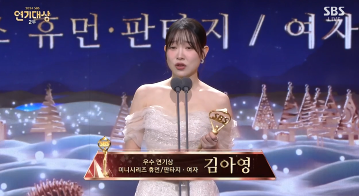 (MHN스포츠 장민수 기자) '2024 SBS 연기대상' 우수상을 수상한 배우 김아영이 눈물로 소감을 전했다.