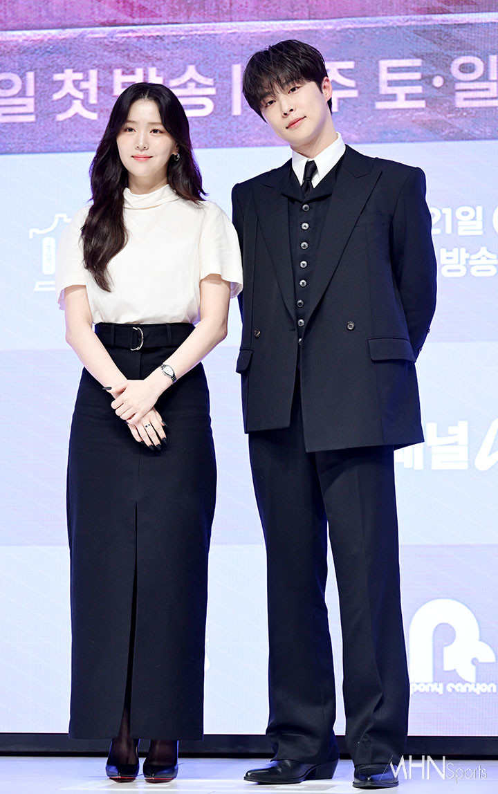 (MHN스포츠 이지숙 기자) 배우 김지은, 배인혁이 16일 오전 서울 강남구 논현동 엘리에나 호텔에서 열린 채널A '체크인 한양' 제작발표회에 참석해 포즈를 취하고 있다.