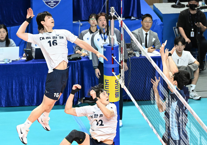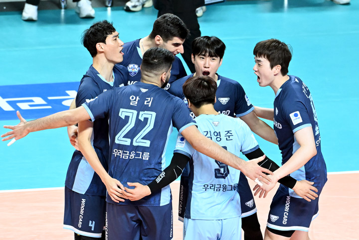 우리카드가 12일 서울 장충체육관에서 열린 2024-25시즌 도드람 V-리그 남자부 3라운드 경기에서 대한항공을 세트스코어 3-2(22-25, 25-20, 25-20, 21-25, 18-16)으로 꺾었다.