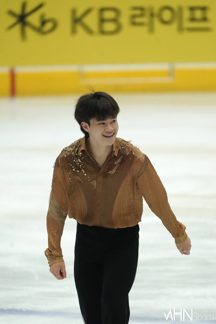 남자 시니어 1경기 김현겸이 경기를 펼치고 있다.