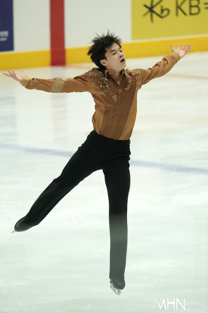 남자 시니어 1경기 김현겸이 경기를 펼치고 있다.