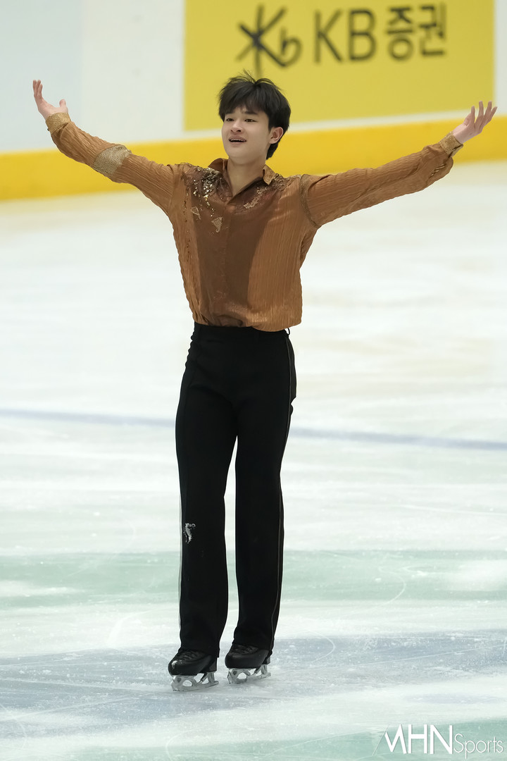 남자 시니어 1경기 김현겸이 경기를 펼치고 있다.