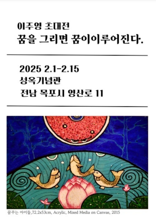 4일 이주영 작가는 오는 15일까지 전남 목포시 성옥기념관 갤러리에서 꿈을 그리면 꿈이 이뤄진다'를 주제로 초대전을 개최한다고 밝혔다. 작가는 태몽(胎夢)을 모티브로 한 작품을 선보인다.