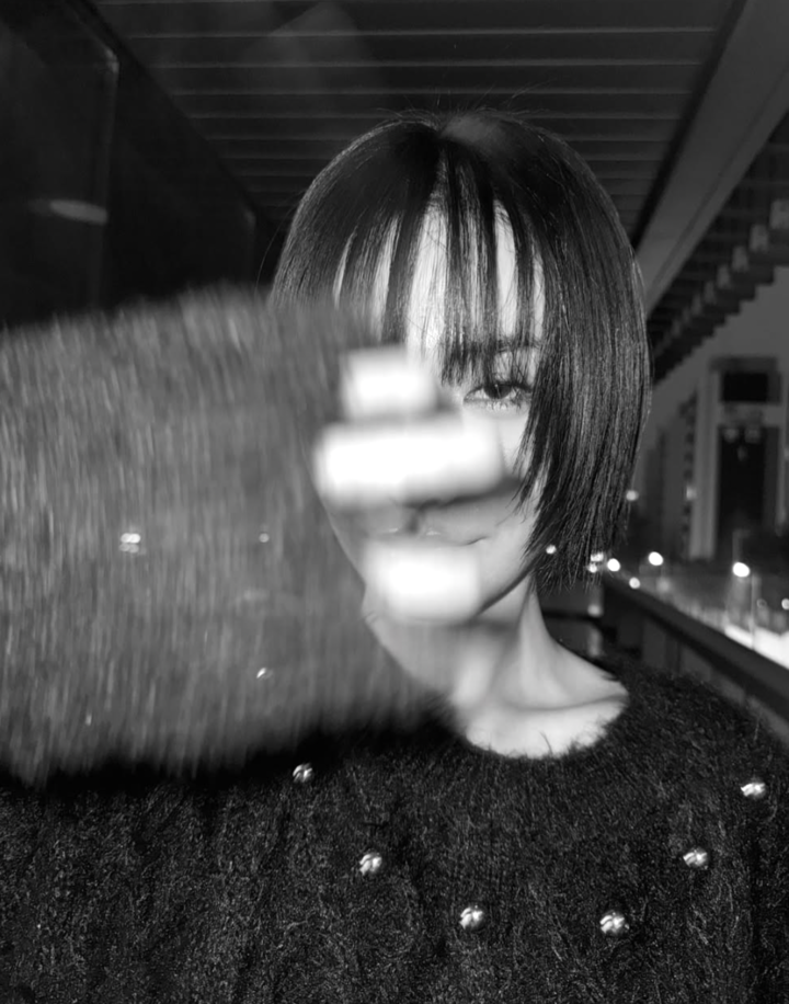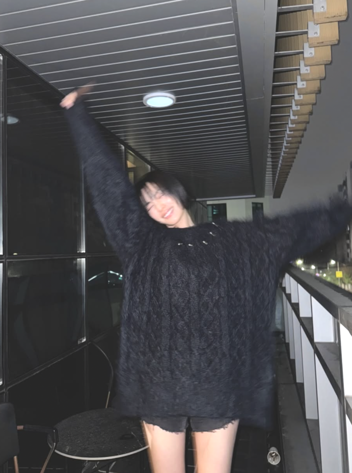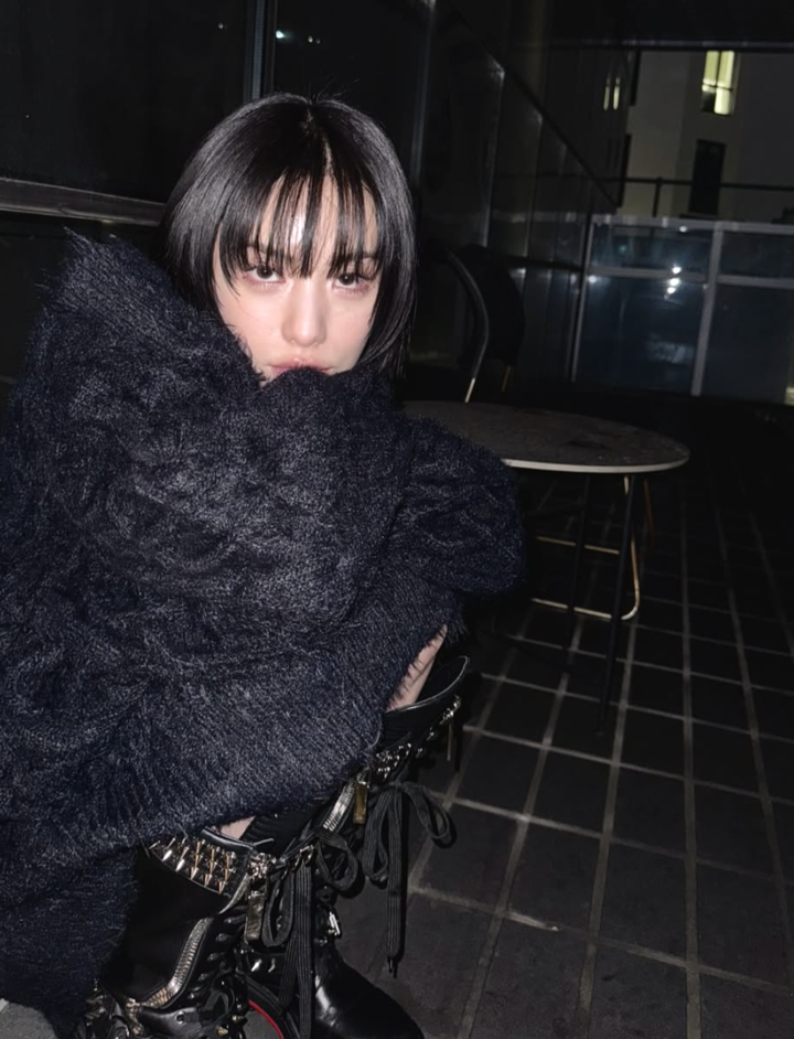 사진 속 나나는 오버한 블랙 니트와 긴 부츠를 매치하여 올블랙의 시크한 매력을 뽐냈다.