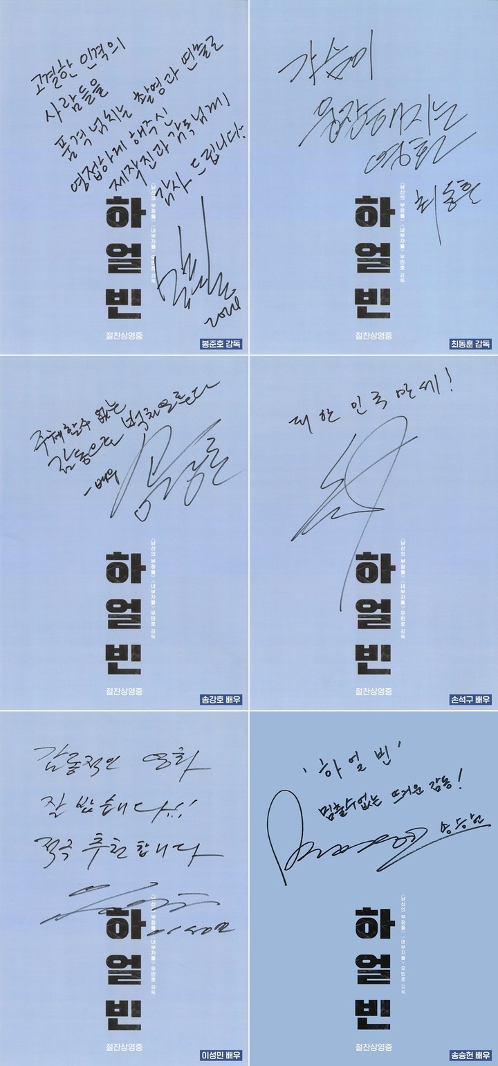 6일 '하얼빈' 배급사 CJ ENM 측은 국내 배우, 감독들이 남긴 친필 추천사를 공개했다.