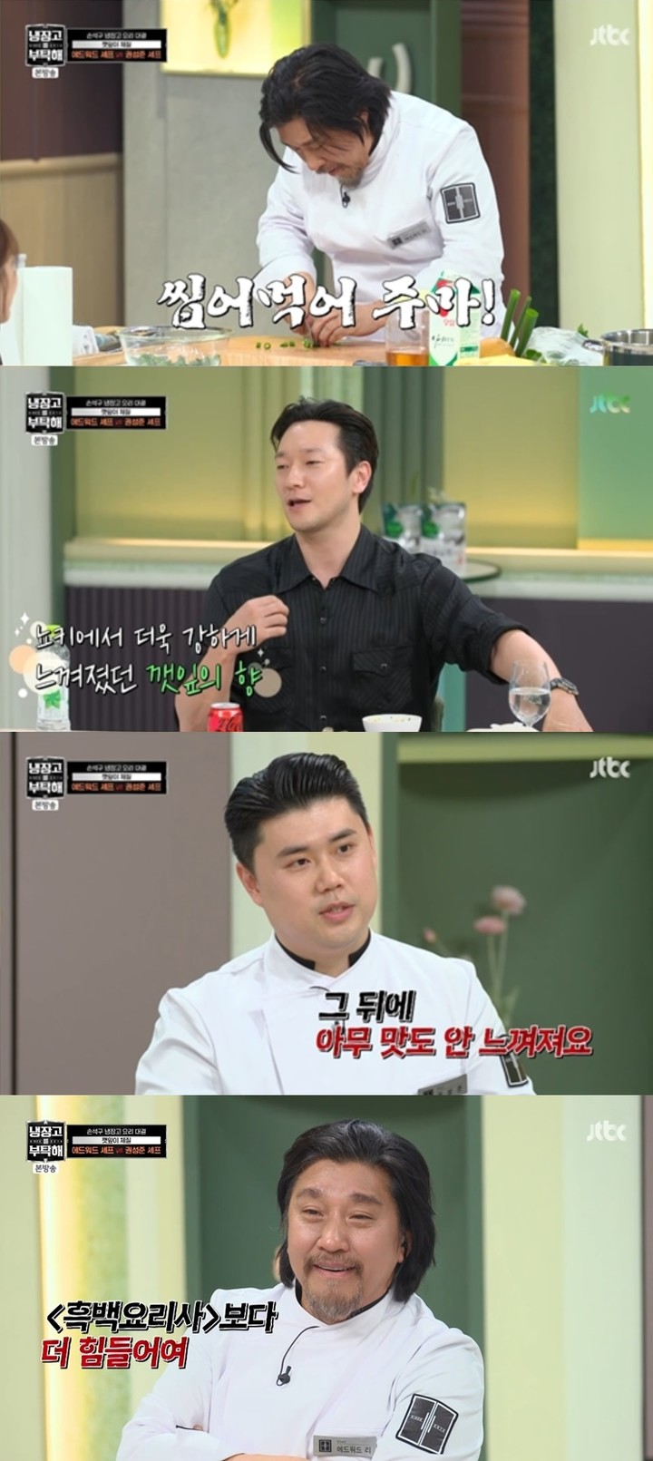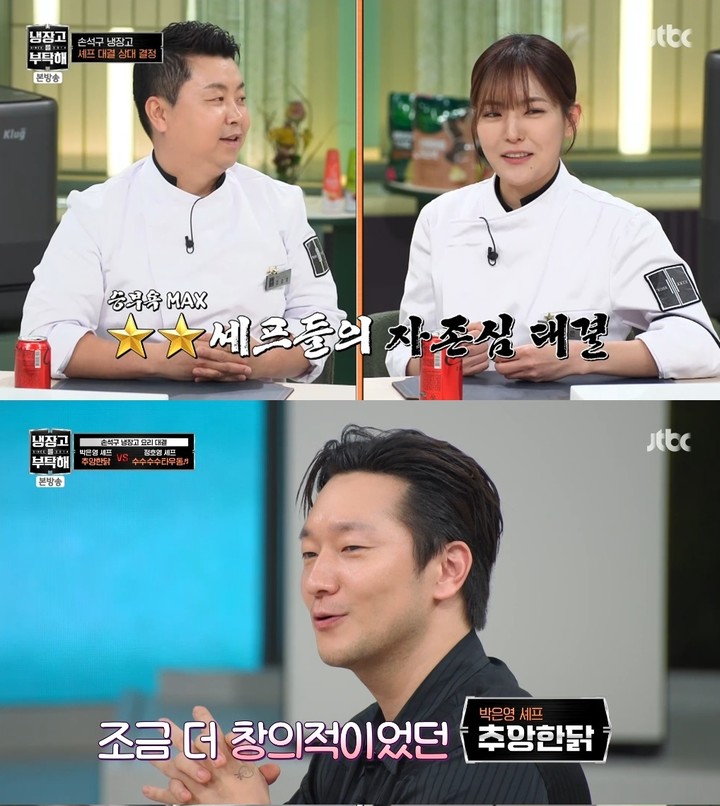 지난 2일 방송된 JTBC 예능 프로그램 ‘냉장고를 부탁해’ 7회에서는 배우 손석구의 냉장고 속 재료로 진행된 요리 대결이 펼쳐졌으며, 무패 기록을 가진 정호영과 박은영, 그리고 '흑백요리사: 요리 계급 전쟁'(이하 '흑백요리사')의 우승자 권성준과 준우승자 에드워드 리가 맞붙어 긴장감을 높였다.
