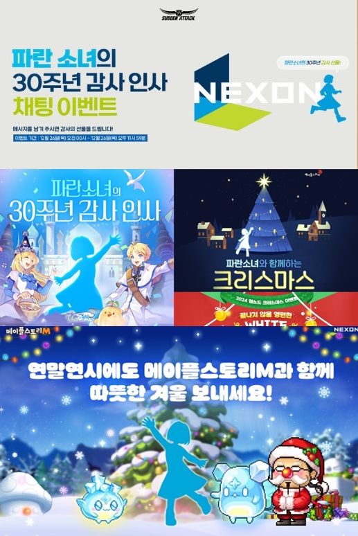 한편 넥슨은 '파란 소녀'를 적극 마케팅에 활용하고 있는 모양새다. 20일 넥슨에 따르면, 연말 이벤트를 열고 있는 대표작 다중접속역할수행게임(MMORPG) '메이플스토리'를 비롯해 1인칭 슈팅(FPS) 게임 '서든어택', MMORPG '마비노기 영웅전', 모바일 MMORPG '메이플스토리M'에서 파란소녀 관련 아이템을 받을 수 있다.