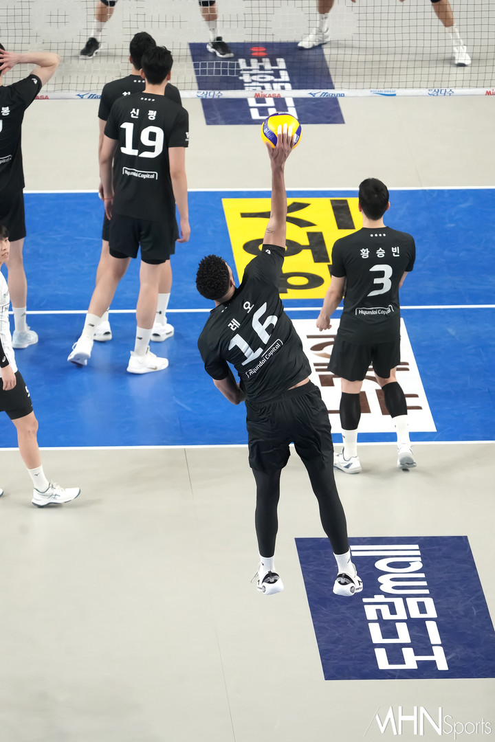 (MHN스포츠 천안, 박태성 기자) 7일 오후 충남 천안에 위치한 유관순체육관에서 '도드람 2024-2025 프로배구’ 남자부 현대캐피탈 스카이워커스와 OK저축은행 읏맨 경기가 열렸다.