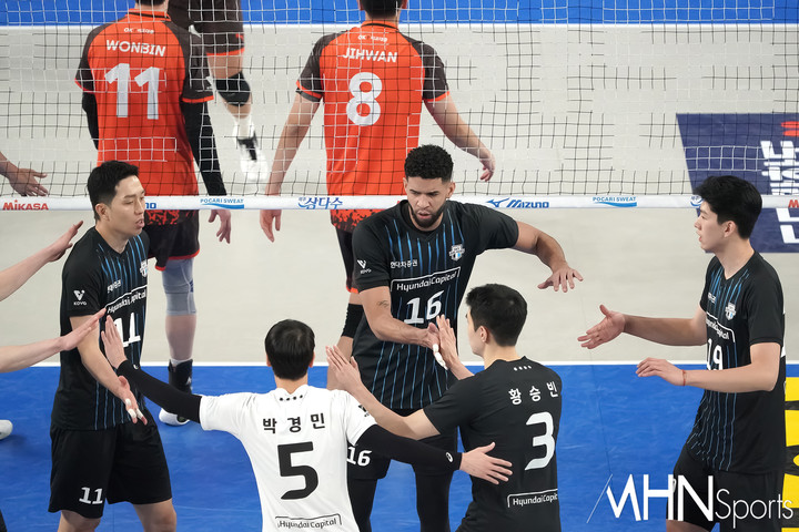 (MHN스포츠 천안, 박태성 기자) 7일 오후 충남 천안에 위치한 유관순체육관에서 '도드람 2024-2025 프로배구’ 남자부 현대캐피탈 스카이워커스와 OK저축은행 읏맨 경기가 열렸다.