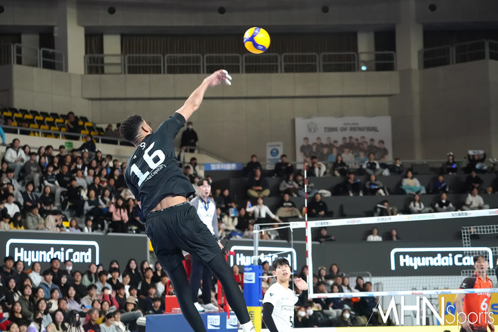 (MHN스포츠 천안, 박태성 기자) 7일 오후 충남 천안에 위치한 유관순체육관에서 '도드람 2024-2025 프로배구’ 남자부 현대캐피탈 스카이워커스와 OK저축은행 읏맨 경기가 열렸다.