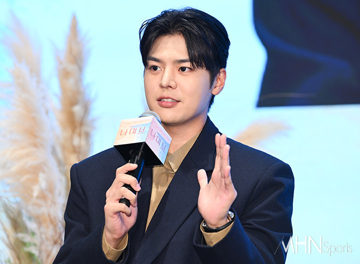 (MHN스포츠 이현지 기자) 배우 려운이 16일 오후 서울 구로구 디큐브시티 더 세인트에서 진행된 '나미브'(연출 한상재) 제작발표회에 참석해 질문에 답하고 있다.