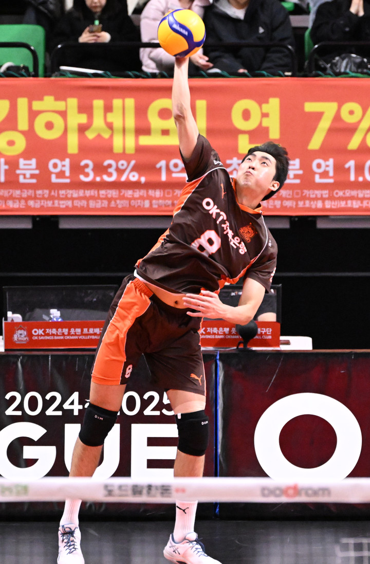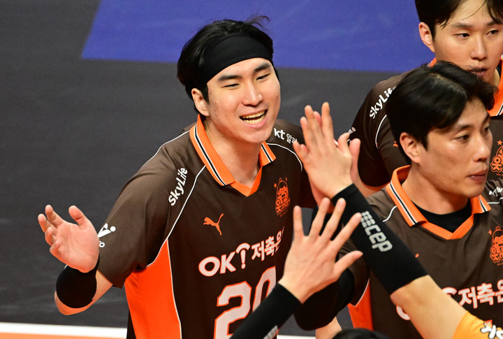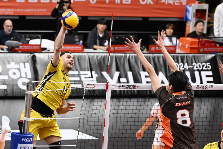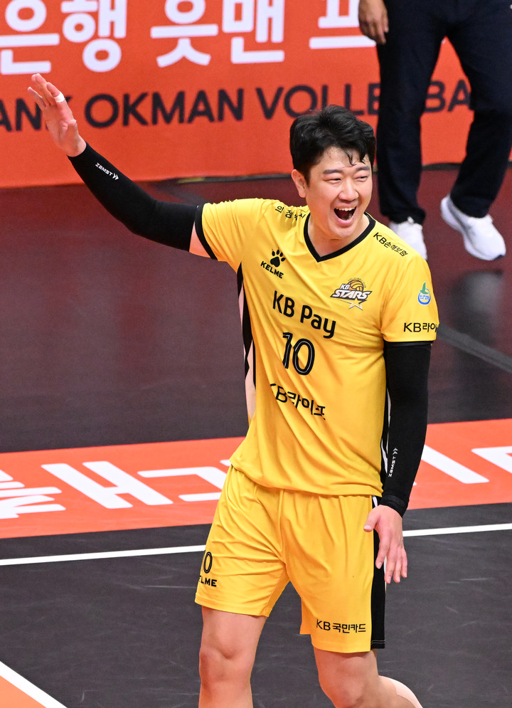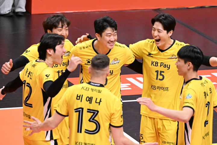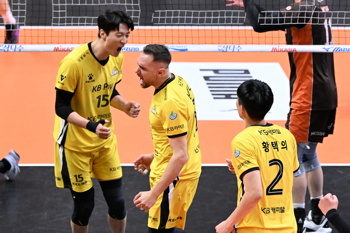 KB손해보험은 10일 안산상록수체육관에서 열린 2024-25시즌 도드람 V-리그 남자부 OK저축은행과 맞대결에서 세트 스코어 3-2(25-18, 23-25, 19-25, 25-21, 15-10 ) 짜릿한 승리를 거뒀다.