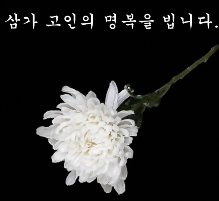 공개된 사진에는 국화꽃과 함께 '삼가 고인의 명복을 빕니다'라는 문구가 적혀 있다.