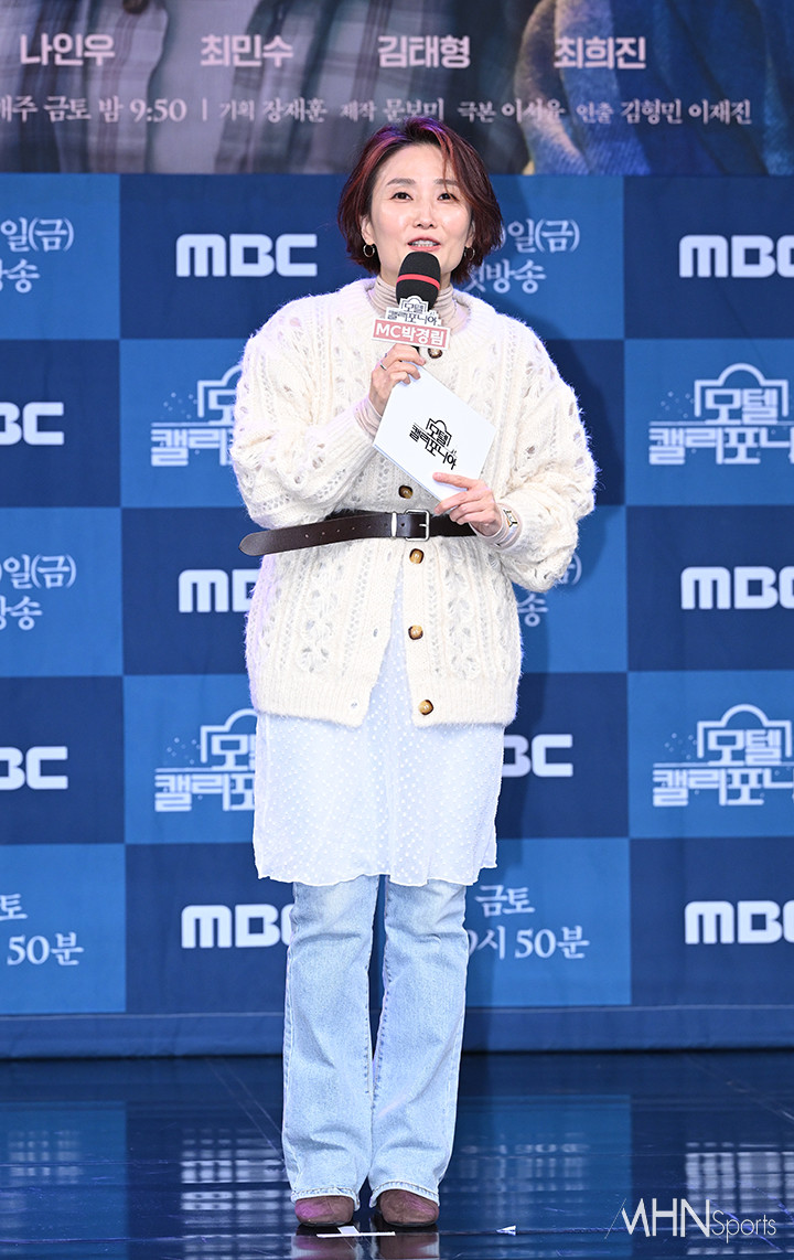 (MHN스포츠 이현지 기자) 방송인 박경림이 9일 오후 서울 마포구 상암 MBC 골든마우스홀에서 진행된 새 드라마 '모텔 캘리포니아' 제작발표회에 참석해 진행을 하고 있다.