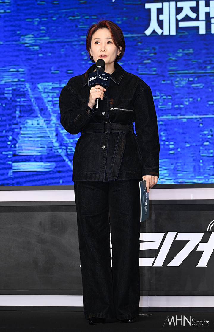 (MHN스포츠 이현지 기자) 방송인 박경림이 8일 오전 서울 영등포구 콘래드 서울 호텔에서 진행된 '트리거' 제작발표회에 참석해 진행을 하고 있다.