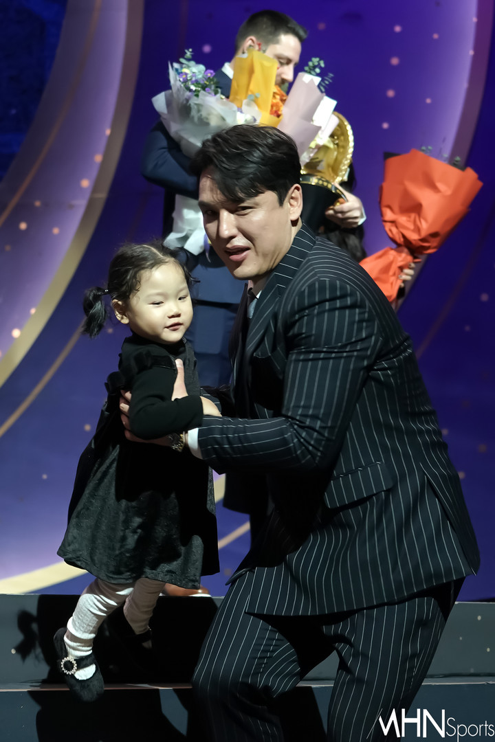 스포츠 박동원과 딸, 꽃다발 전한 뒤 이동