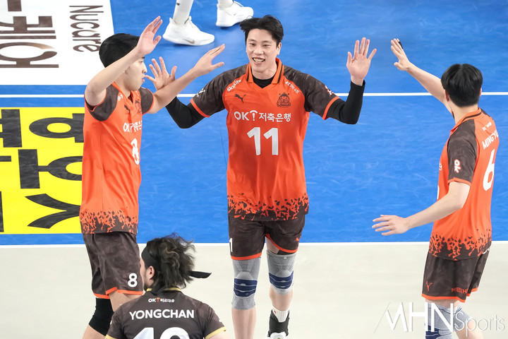 (MHN스포츠 천안, 박태성 기자) 7일 오후 충남 천안에 위치한 유관순체육관에서 '도드람 2024-2025 프로배구’ 남자부 현대캐피탈 스카이워커스와 OK저축은행 읏맨 경기가 열렸다.
