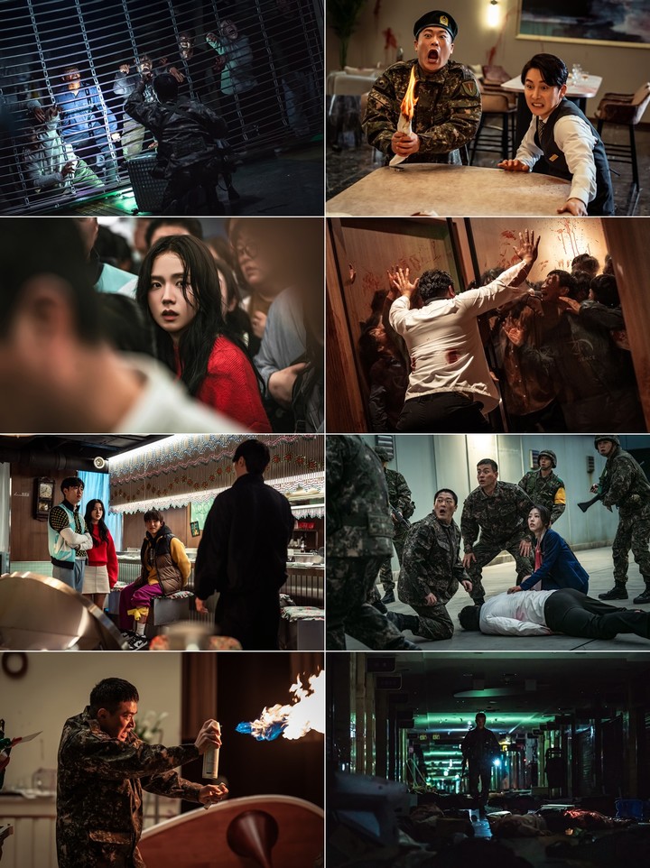 공개된 스틸에서 재윤은 부대가 위치한 서울 도심 고층 타워에서 좀비로 뒤덮인 일촉즉발의 상황들에 맞서고 있어 역동적인 액션에 대한 기대를 더한다.