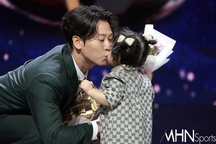 스포츠 박찬호, 생애 첫 황금장갑 받고 딸과 키스