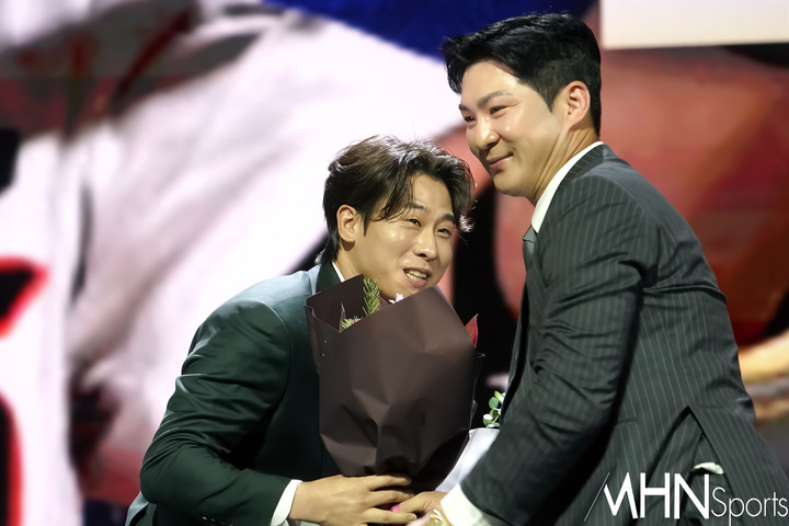 유격수 부문 박찬호가 수상을 하고 있다.