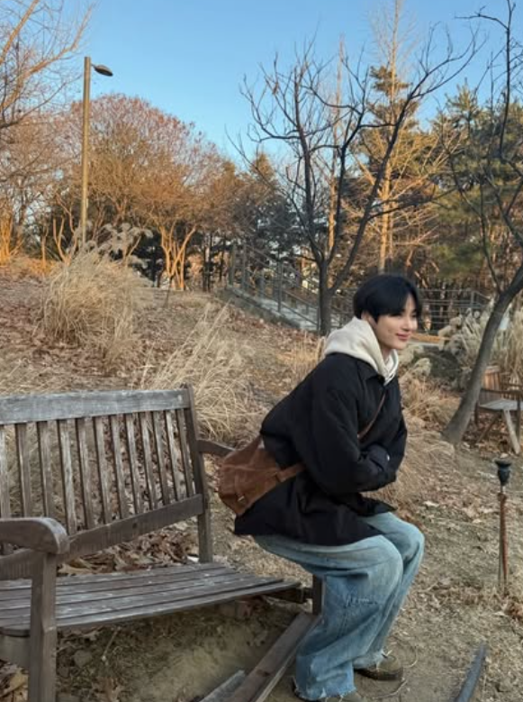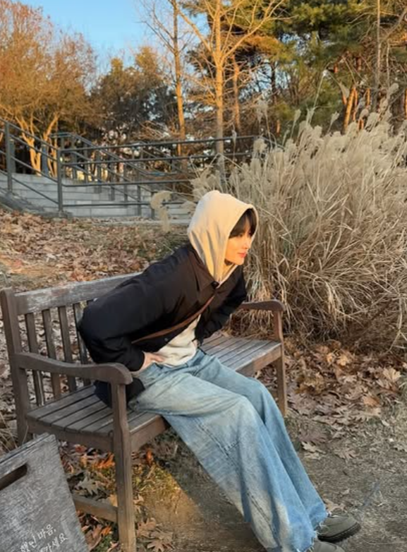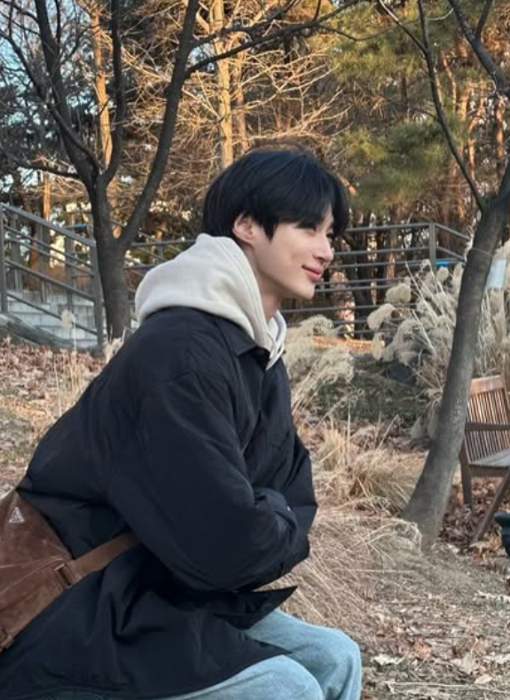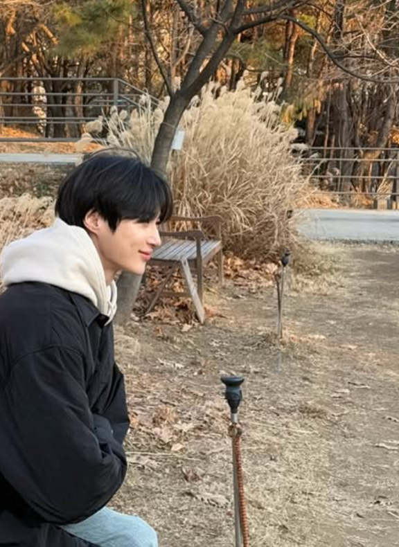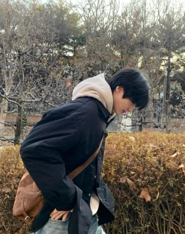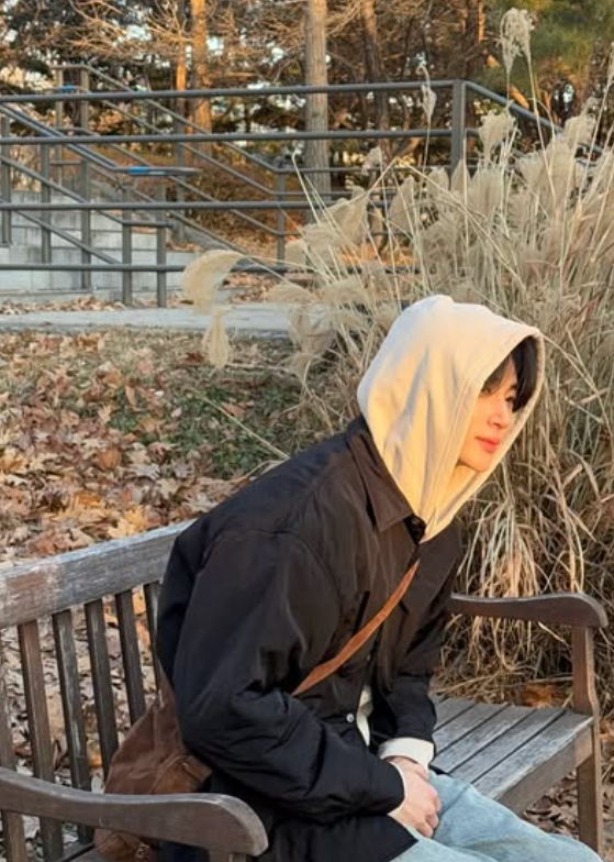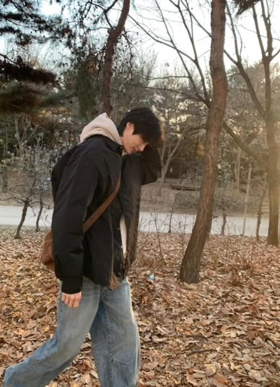 가을에 촬영한 것으로 보이는 사진에서 변우석은 청바지에 흰색 후드티, 검정색 재킷으로 코디하며 캐주얼한 '남친룩'을 완성했다.