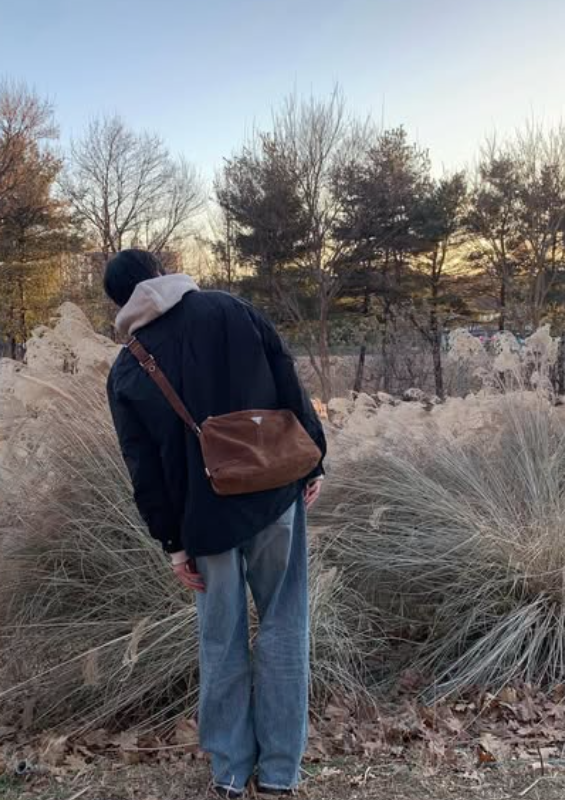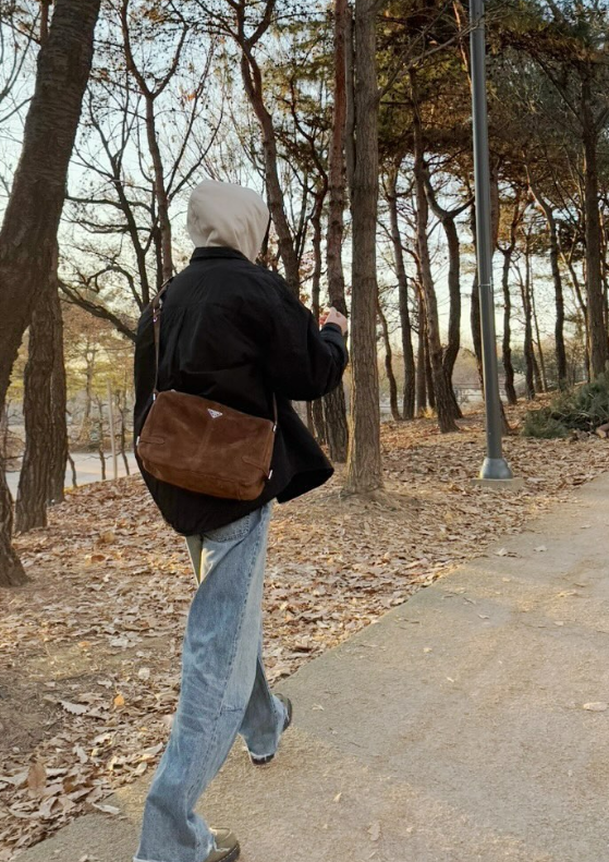 여기에 브라운 컬러의 가방으로 포인트를 줬다. 해당 가방은 430만 원대의 명품 브랜드 제품으로 알려져 있다.