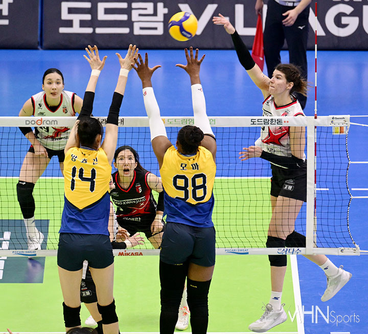(MHN스포츠 수원, 이지숙 기자) 22일 수원 실내체육관에서 도드람 2024~2025 V-리그 여자부 현대건설과 정관장의 경기가 열렸다.