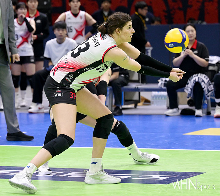 (MHN스포츠 수원, 이지숙 기자) 22일 수원 실내체육관에서 도드람 2024~2025 V-리그 여자부 현대건설과 정관장의 경기가 열렸다.