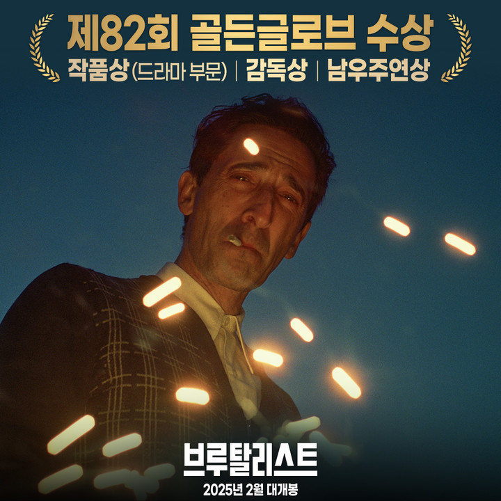 오는 2월 국내 개봉을 앞둔 이 영화는 제81회 베니스 영화제에서 감독상을 받은 브래디 코베의 탁월한 연출력을 통해 더욱 주목받았다. 이어 제82회 골든글로브 시상식에서는 주요 7개 부문에 노미네이트 되는 성과를 이뤄내며 그 위상을 높였다.