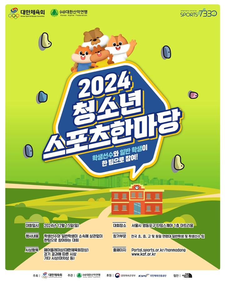 이번 대회는 초등학교 4학년부터 고등학교 3학년까지 참여할 수 있으며, 학생선수와 일반학생이 한 팀을 이루어 1팀당 4명이 볼더 경기에 참가한다.