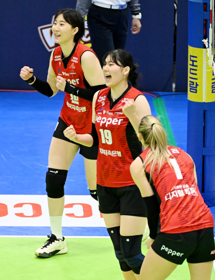 그리고 막판 박정아가 블로킹 득점에 성공하며 26-24, 페퍼저축은행이 극적으로 3점 승을 일궈냈다.