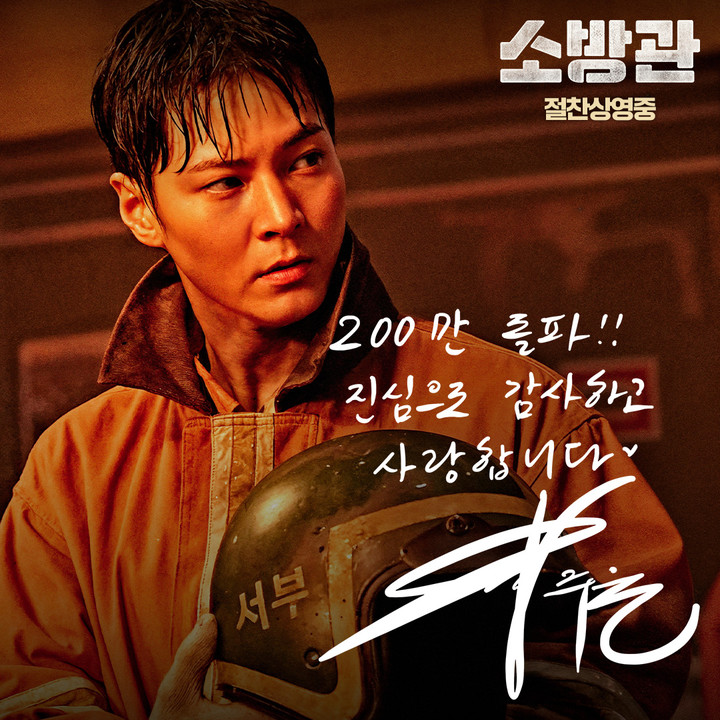 지난 4일 개봉한 '소방관'은 7일과 8일 이틀을 제외하고 계속해서 1위 자리를 지키고 있다. 누적관객수는 200만5651명이 됐다.