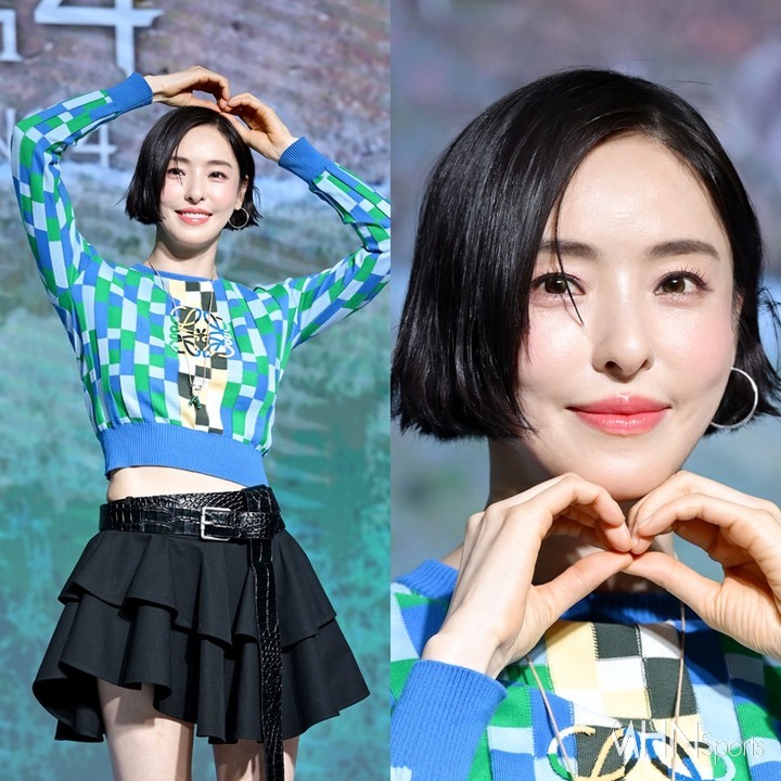 장발에서 시크한 단발로 돌아온 헤어스타일도 눈길을 끌었다. 숏컷에 가까운 칼단발 스타일로 확 달라진 분위기를 완성했다.