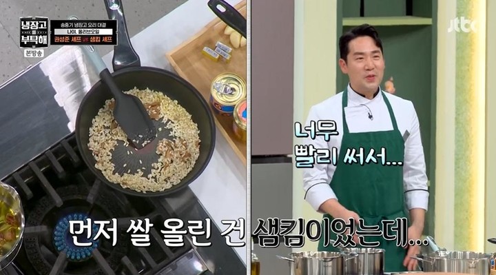 무엇보다 ‘흑백요리사: 요리 계급 전쟁’ 우승자 권성준과 ‘냉장고를 부탁해’의 원조 셰프 샘 킴의 리소토 미러전이 도파민을 자극했다. 권성준은 하늘을 찌르는 자신감과 ‘흑백요리사: 요리 계급 전쟁’에서 우승했을 때 사용했던 프라이팬을 꺼내 호기롭게 시작했으나 치즈 튀일과 피칸도 올리지 못한 채로 리소토와 디저트를 급하게 끝내며 15분 요리 대결의 매운맛을 제대로 느꼈다.
