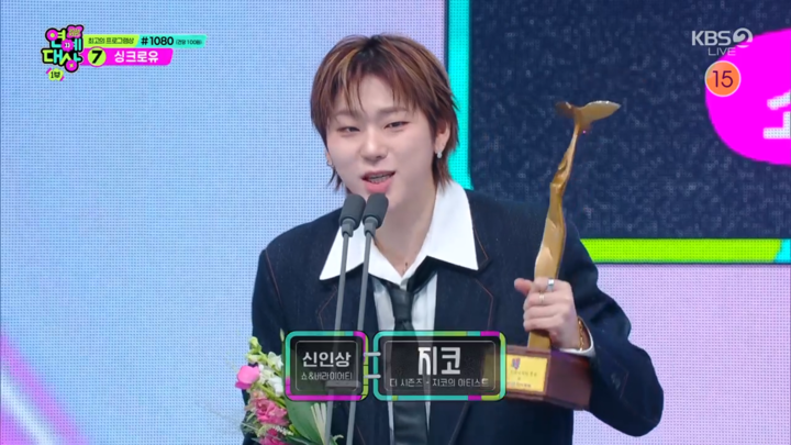 지코는 "오늘 데뷔 5천일이 됐다고 하는데 처음으로 신인상을 받게 됐다. 너무 감사드린다. 첫 회부터 뚝딱거렸던 저인데 말문을 열 수 있게 된 건 스스로의 노력이 아니라 제작진 여러분의 뒷받침 덕분이라고 생각한다. 이 자리를 빌려 감사의 말씀을 드린다. 언젠가는 다시 만날 날을 기다리며 항상 추억에 잠긴 채 살아가겠다. 소중한 추억인 더 시즌즈, 끝까지 안고 살아가겠다"고 소감을 전했다.