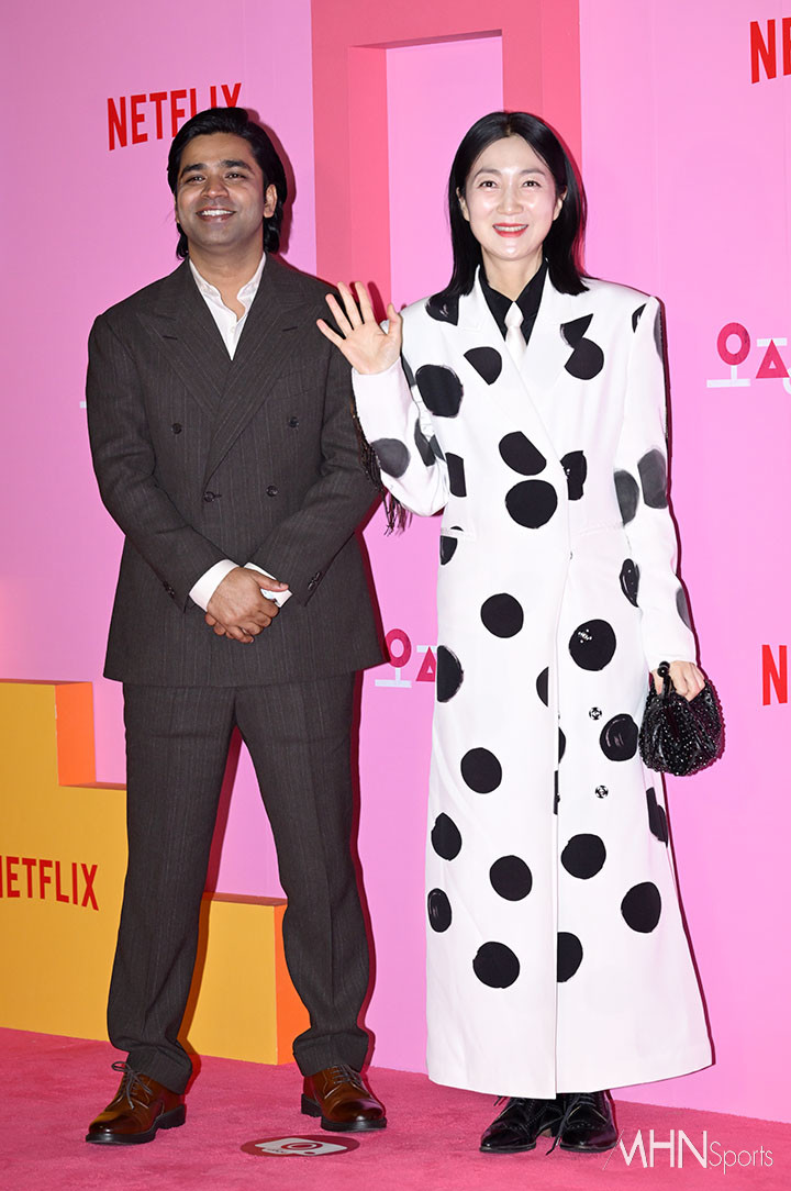 (MHN스포츠 이지숙 기자) 배우 아누팜, 김주령이 9일 오후 서울 중구 동대문디자인플라자에서 열린 넷플릭스 '오징어 게임 시즌2'(감독 황동혁) 월드 프리미어 이벤트에 참석해 포즈를 취하고 있다.