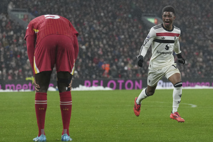 맨유는 전반을 신중하게 보냈다. 리버풀은 전반 16분 살라가 맥 알리스터에게 볼을 흘렸지만 오나나가 이를 잡아냈다. 맨유에서도 공격 시도가 터졌다. 5분 뒤 달롯이 디알로에게 크로스를 전했지만 득점으로 이어지지 않았다. 전반 42분 회일룬이 일대일 찬스를 만든 것도 알리송이 막아내며 무승부로 전반전을 마쳤다.