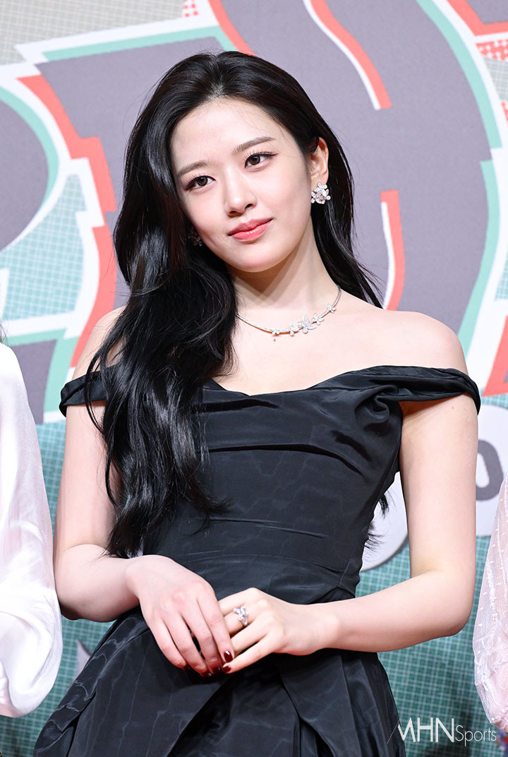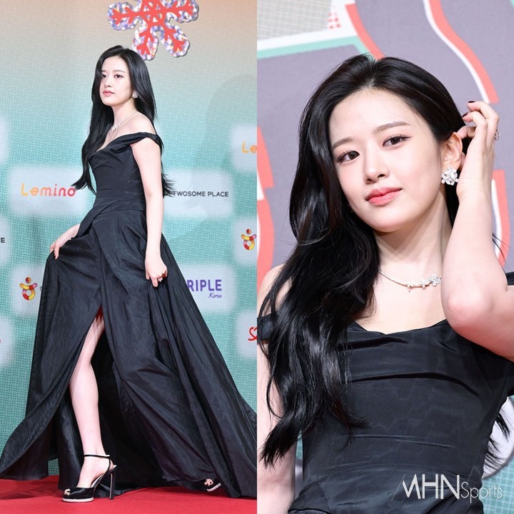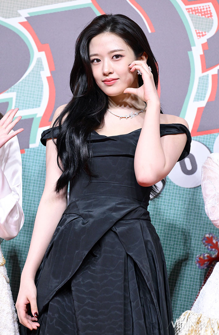 안유진은 목선과 어깨가 돋보이는 오프숄더 드레스를 착용하고 등장해 취재진의 시선을 사로잡았다. 예능에서 만날 수 있었던 안댕댕이나 맑눈광의 이미지는 잊게만들 우아한 비주얼을 선보였다.