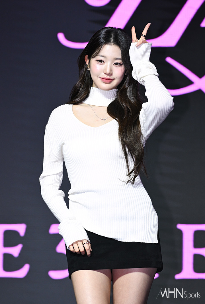 (MHN스포츠 이현지 기자) 그룹 아이브 장원영이 3일 오후 서울 영등포구 콘래드 서울 호텔에서 진행된 세 번째 미니 앨범 '아이브 엠파시(IVE EMPATHY)' 발매 기념 기자간담회에 참석해 포토타임을 갖고 있다.