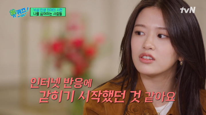 이어 "매주 투표로 순위가 정해지고 그 순서대로 줄을 서다 보니 인터넷 반응에 갇히기 시작했던 것 같다. 연습생 시절에는 잘 할 수 있을 거라는 자신감이 있었는데 뭘 하지 않아도 저를 미워하는 분이 있다는 것을 알게 됐다. 제가 직장인이라면 저에 대한 평가를 24시간 열람할 수 있는 건데, 새벽에도, 일어나서도 이 반응을 보다가 다른 사람이 날 어떻게 볼까 생각하며 무서움이 생겼었다"고 고민을 털어놓았다.