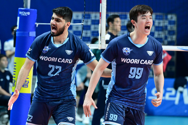 스포츠 알리+김지한 48득점! '통곡의 벽' 20번 세운 우리카드, 삼성화재 꺾고 3위 추격 정조준