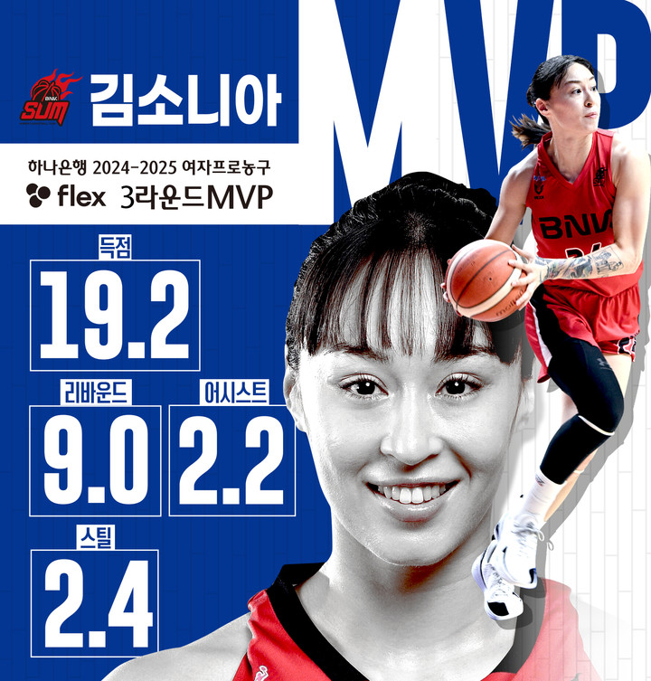 스포츠 '역시 에이스!' BNK 김소니아, 여자프로농구 3라운드 MVP 등극...MIP는 우리은행 이명관