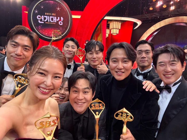 해당 사진 속 배우들은 트로피를 받아들며 행복해하는 모습과 더불어 회식 자리까지 함께해 수상의 여운을 즐기고 있다.
