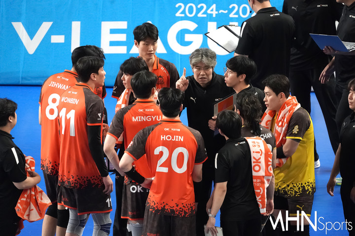 (MHN스포츠 천안, 박태성 기자) 7일 오후 충남 천안에 위치한 유관순체육관에서 '도드람 2024-2025 프로배구’ 남자부 현대캐피탈 스카이워커스와 OK저축은행 읏맨 경기가 열렸다.