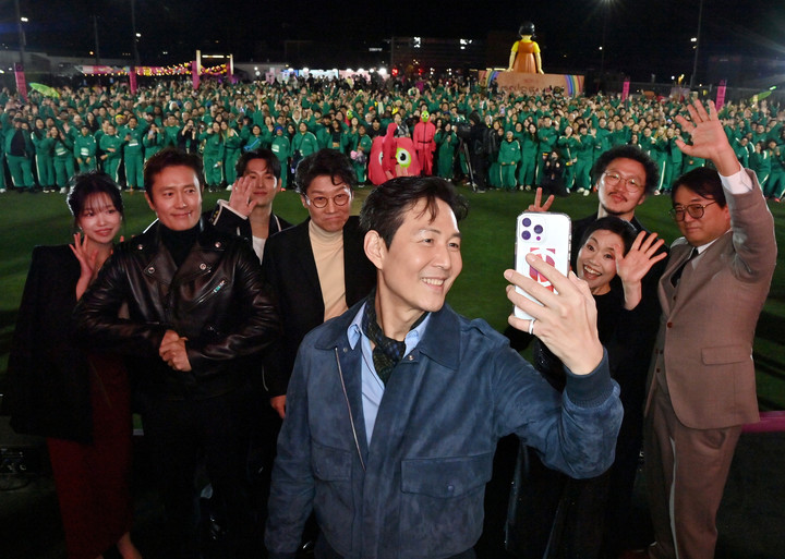 황동혁 감독은 작품 속 게임 참가자들과 같은 ‘트레이닝복’을 입고 모인 2,000여 명의 팬들을 향해 “이 순간을 잊을 수 없을 것 같다”며 벅찬 마음을 전했다. 이어 “​오징어 게임의 팬으로서 이벤트에 참여해 줘서 고맙다. 여러분들이 최고의 크리스마스 선물이다”라며 팬들을 향한 애정을 드러냈다.