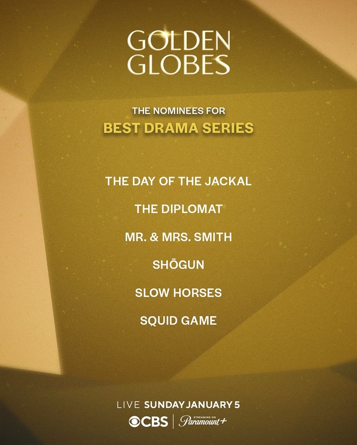 지난 9월 프라임타임 에미상 시상식에서 최다 수상 기록을 써 화제를 모았던 '쇼군'도 후보에 올랐다. '쇼군'은 제임스 클라벨의 소설을 원작으로 하는 드라마로, 디즈니+에서 스트리밍 됐던 만큼 넷플릭스 '오징어 게임' 시즌2와 우열을 겨룰 전망이다.
