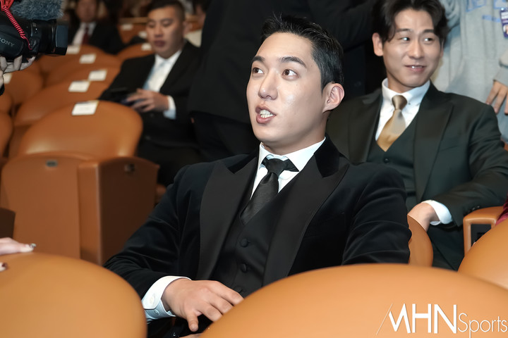 원태인, 박찬호, 김도영이 시상식장에 참석하고 있다.